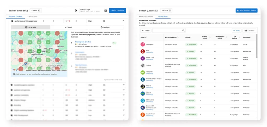 This consistency signals to search engines that your business is trustworthy, improving both SEO and local GEO visibility. When people in Spokane, or any other designated area search for your service, Beacon helps you show up first and correctly.