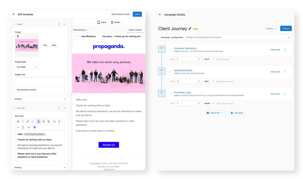 - Push – Delivers ongoing email and SMS campaigns that keep your audience engaged.